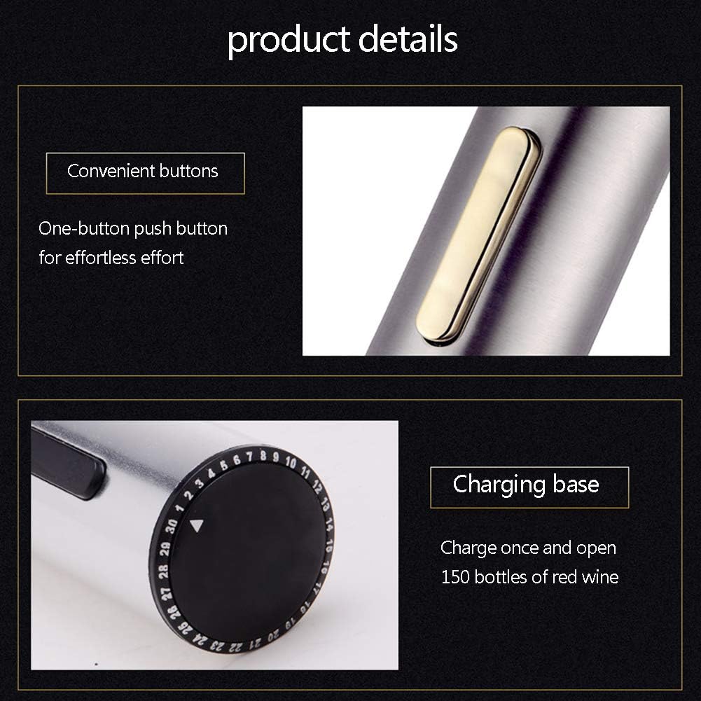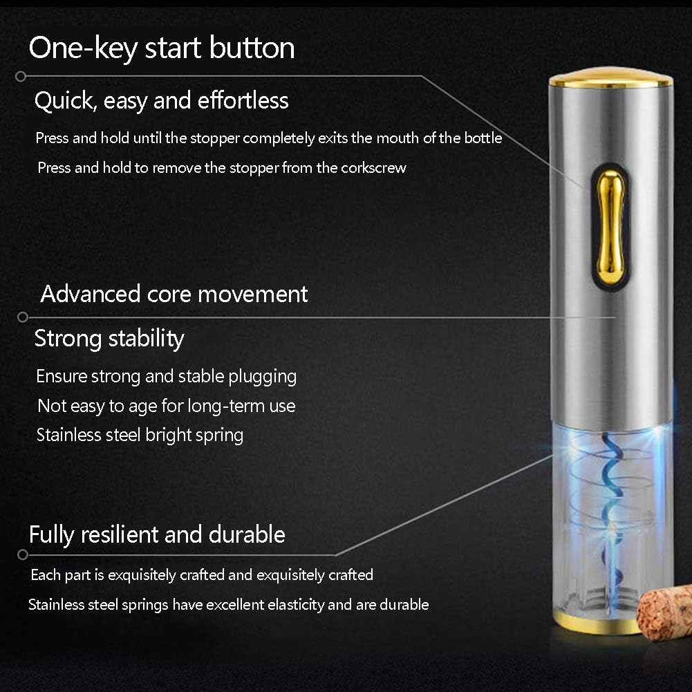 Product Name: Dry Battery Wine OpenerMaterial: stainless steel, ABSColor: Picture colorProduct packaging: metal bottle opener × 1, paper cutter × 1, red wine stopper × 1, pourer × 1Note: This product does not contain batteries, you need to buy 4 AA batteries by yourself into the bottle openerGreat gift for wine loversThis unique and beautiful bottle opener is perfect for housewarming or close friends' birthdays, outdoor garden parties or as a wedding gift, but also for ladies, men, moms, dads, girls, family or friends. The wine accessories are easy to use, and the elegant look complements any decor and is a great addition to any bar or kitchen.When not in use, it can be placed next to the wine cabinet, storage rack, storage cabinet, etc., which is both beautiful and convenient.Elegant colors make our electric wine openers a tempting gift.