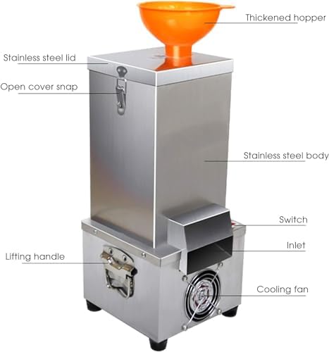 Name: Garlic Peeling Machine Material: Stainless steel Product color: Stainless steel Rated frequency: 50Hz/60Hz Rated power: 180W Hourly output: 25kg/h Peeling rate: 98% Product size: 22×21×51cm Packing size: 25×25×48cm Net weight: 8.5kg Gross weight: 10kg Description ? Equipped with a built-in large radiator for efficient heat dissipation, ensuring stable operation and durability. ? Designed for peeling dried garlic effectively. Precautions ? Inspect the peeling barrel for debris before starting the machine. ? Ensure the machine cover is securely locked. ? Load garlic into the funnel—preferably dried and stalk-removed—for optimal peeling results. ? Disconnect power before cleaning or disassembling. ? Avoid pressing the switch with wet hands during operation.