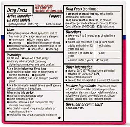 Allergy Relief Tablets with Diphenhydramine Hcl 25Mg Antihistamine, 100 Count
