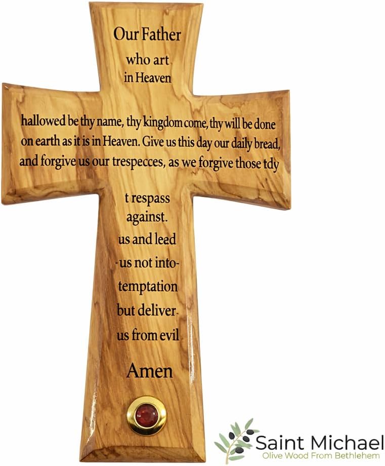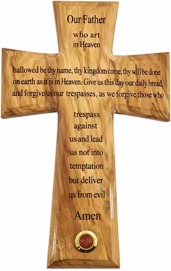 | Special Features | Hand-carved Holy Land Olive Wood, Lord's Prayer Laser-cut Surface |