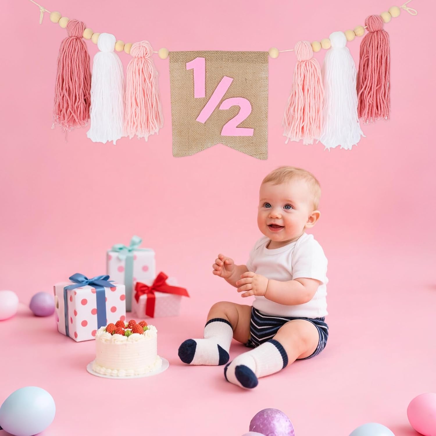 Specification: Color: pink Material: polyester cloth Product Size: 178x19.5x3cm/70.08x7.68x1.18in Package details: 1 x pink tassels 1/2 birthday banner Note: Due to manual measurement, the size and weight may have a certain error. Due to the difference between different monitors, there may be a slight color difference existed.