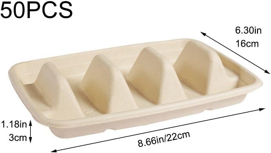 Specification:Material:paper pulp.Size:8.66x6.30x1.18inch/22x16x3cm.50Pcs* taco holder.Color:as shown.Packing includeds:.NOTE:1.1 inch=2.45cm/1cm≈0.393inch2.Please allow 1-3 cm error due to manual measurement. pls make sure you do not mind before you bid3.Due to the difference between different monitors, the picture may not reflect the actual color of the product