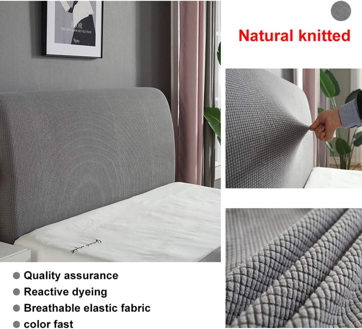 Description:√Crafted from high-quality polyester materials, this bedside dust cover is comfortable to the touch; and it is flexible and easy to install or remove, making it very convenient.√With its solid color design, this bedside dust cover is very simple and stylish, so it can match with your home decor and enhance your home style.√There are 7 colors and 3 sizes for you to choose from.It can be used in bedrooms or hotels to protect your bed head from abrasion or scratches.Material: 85% Polyester 15% Spandex Jacquard Fabric.Dimension:How to choose the right size?This headboard is stretchable, If your headboard length is within the following range, it will fit perfectly. TWIN(47"-55" ) / 120-140cm (Suitable for 120-140cm headboard) .FULL(59"-67") / 150-170cm (Suitable for 150-170cm headboard) . QUEEN (71"-78" ) /180-200cm (Suitable for 180-200cm headboard). KING(83"-95" )/210-240cm (Suitable for 210-240cm headboard). Applicable: Wood / cloth / micro / leather headboard.Package included: 1x bed head cover. (Others are not included).