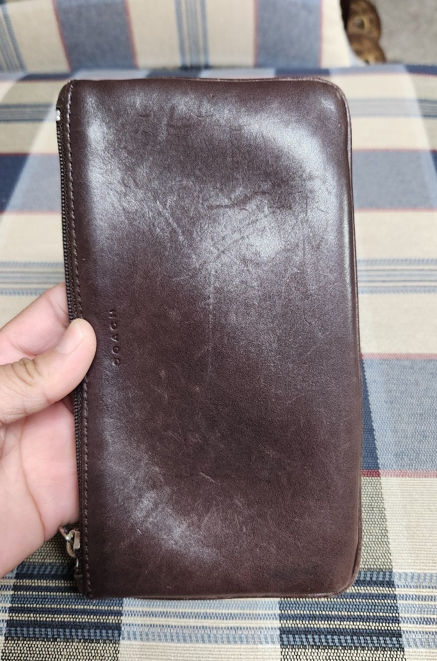 Beautiful pre-owned vintage coach leather clutch or pouch. It's in good condition. Please check all the photos provided and ask questions before buying. This is vintage, so expect some scratches, as you can see in the photos. You can clean it or condition the leather.