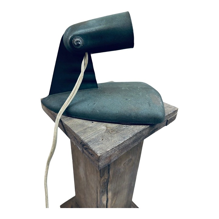 Lamp is in good condition and works great. The metal had natural patina. Cord looks to be original and in OK condition ( recommend replacing cord) Base has a adjustable mount on it for wall mounting. Manufacturing tag and union made tag have some ware. Lamp base measures 7" by 4 1/4" . Bulb mount is also adjustable. Lamp is shown with bulb but not included.